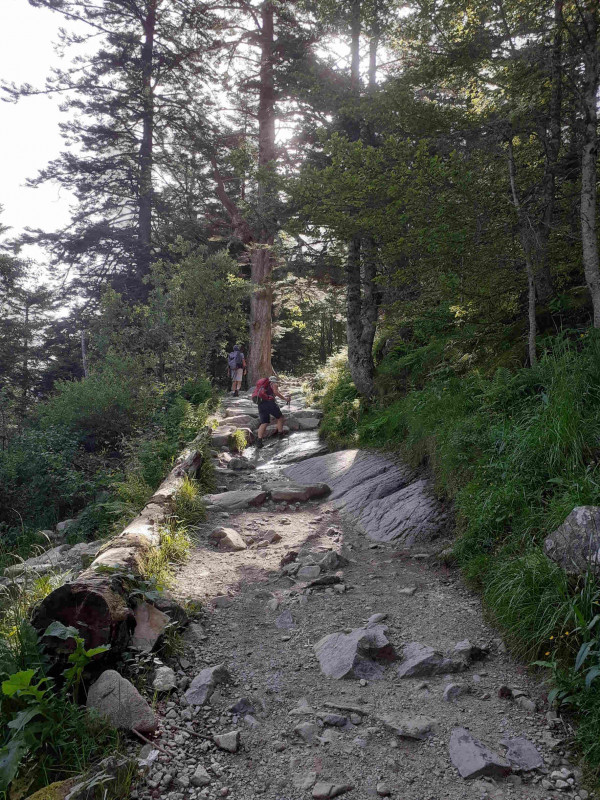 De suite, le GR 10 monte raide dans la forêt. Il fait bon sous le couvert, il est 9 h 20.