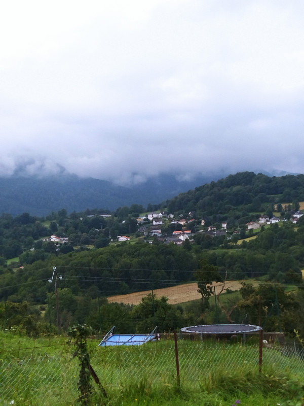 Un sentier fait de marches en pierre et d’ un escalier nous mène à l’entrée de Bartrès, petit village à 5 kms de Lourdes et comptant 560 habitants. Nous traversons un quartier fait de belles et récentes maisons.