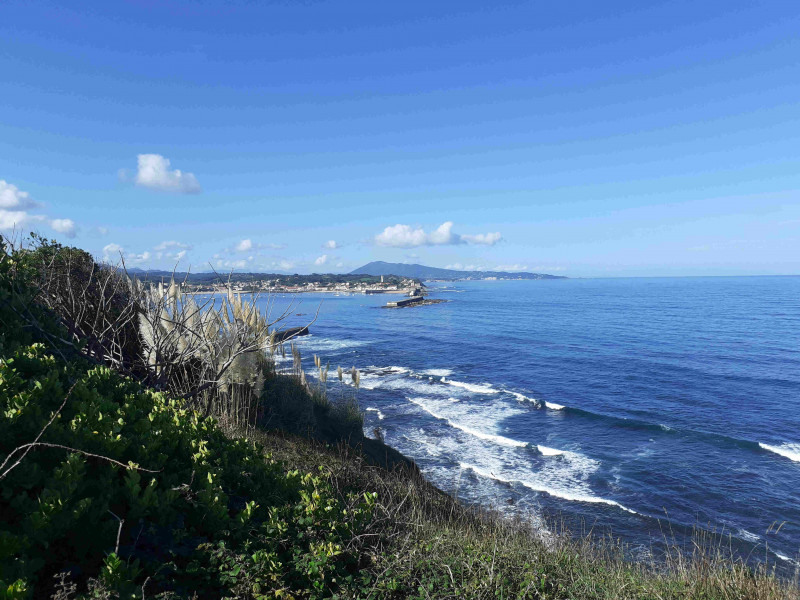 A l'est, Biarritz s'étale au delà de la mer, plate aujourd'hui, fendue par quelques bateaux et quelques surfeurs en mal de vagues.