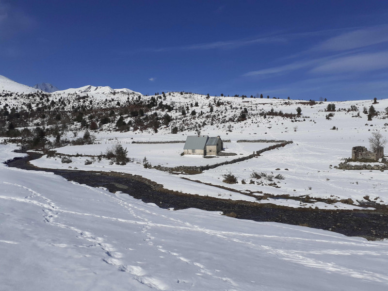 Enfin, c'est le départ. Le paysage est magnifique avec le ciel qui daigne se mettre au bleu, avec l'observatoire du Pic du Midi, comme une bougie posée sur un gâteau meringué, avec les cristaux de neige scintillant sous la lumière. (Là, attention, c'était un moment de poésie offert par la Coulée d'Ousse, à moins que ce ne soit un passage recyclé d'un ancien article du site...)