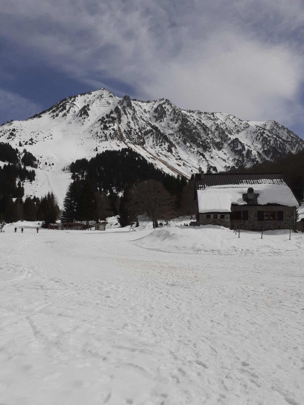 On peut alors vraiment commencer. La montée se fait à l’ombre sous la hêtraie. La pente est régulière, la neige est bien présente, heureusement tassée. Parfois sur quelques mètres, il n’y a plus rien mais globalement ça passe.