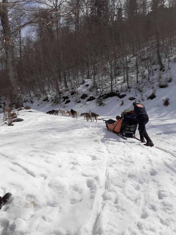 de traîneau qui gravit la pente au grand bonheur d’une famille emmitouflée, pour les chiens c’est plus dur ! Une petite bataile de boules de neige et c'est l'heure de repartir!