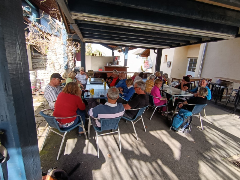 Km : 6, 14h00 : après une petite sieste pour quelques-uns et la traditionnelle photo de groupe, nous reprenons notre cheminement