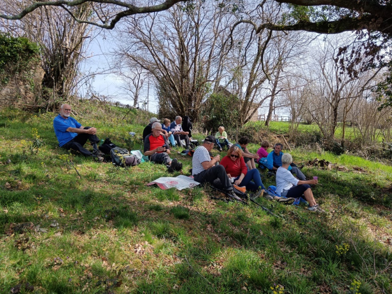 Km : 6, 14h00 : après une petite sieste pour quelques-uns et la traditionnelle photo de groupe, nous reprenons notre cheminement